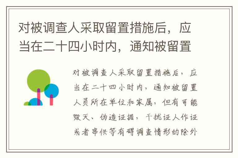 对被调查人采取留置措施后,应当在二十四小时内,通知被留置人员所在单位和家属,但有可能毁灭、伪造证据,干扰证人作证或者串供等有碍调查情形的除外。() A. 正确 B. 错误