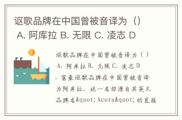 讴歌品牌在中国曾被音译为() A. 阿库拉 B. 无限 C. 凌志 D. 富豪