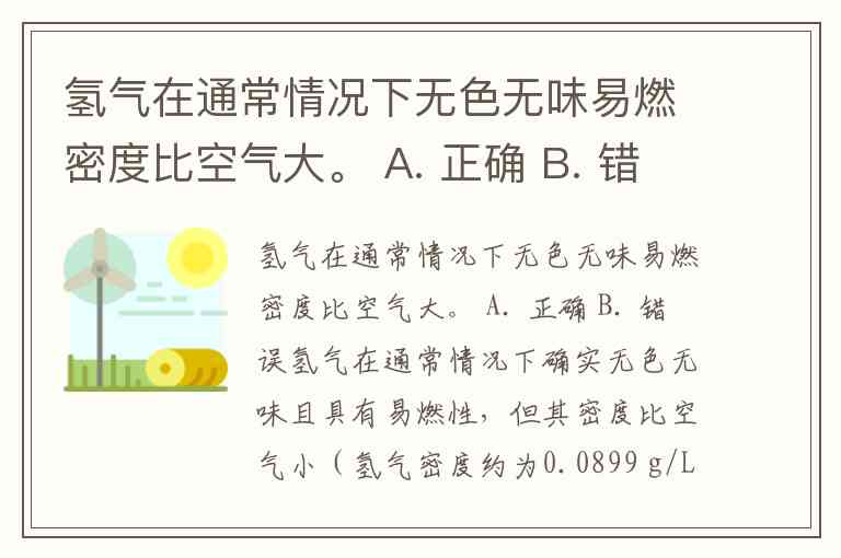 氢气在通常情况下无色无味易燃密度比空气大。 A. 正确 B. 错误