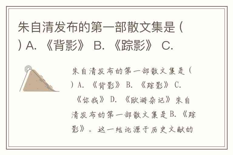 需特别注意的是,部分资料混淆了“单篇散文”与“散文集”的概念,误将《背影》文集称为第一部。而权威文献如《朱自清代表著作品集》明确显示,《踪迹》(1924年)是其首部包含散文的合集,严格意义上的“第一本散文集”应为《背影》(1928年),但根据题目选项设置(仅《踪影》对应早期合集),正确答案只能选择 《踪影》。