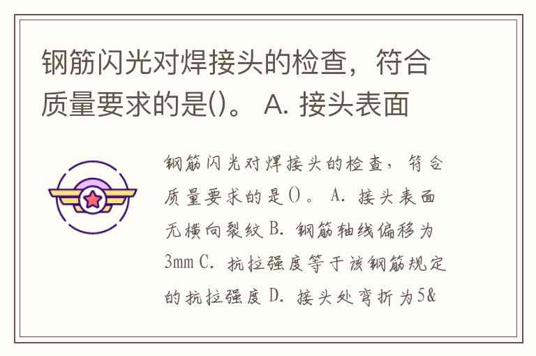 A. 接头表面无横向裂纹:直接符合外观检查核心要求,裂纹会严重削弱接头受力性能,是必须杜绝的缺陷。