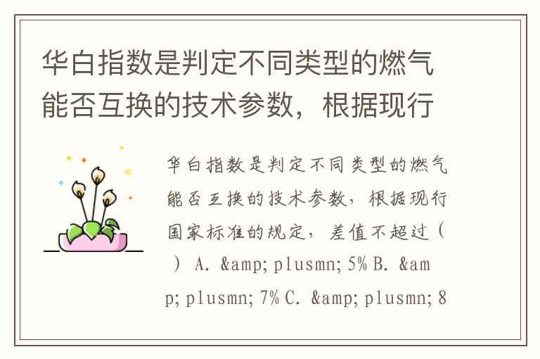 华白指数是判定不同类型的燃气能否互换的技术参数,根据现行国家标准的规定,差值不超过( ) A. ±5% B. ±7% C. ±8% D. ±10%