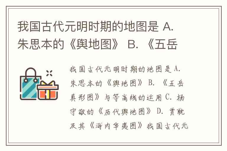 我国古代元明时期的地图是 A. 朱思本的《舆地图》 B. 《五岳真形图》与等高线的运用 C. 杨守敬的《历代舆地图》 D. 贾耽及其《海内华夷图》