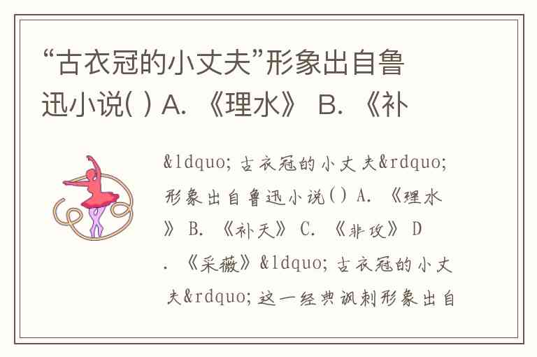 “古衣冠的小丈夫”这一经典讽刺形象出自鲁迅的历史小说《补天》,答案为 B。