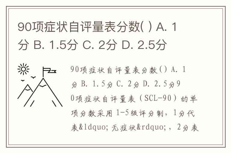 90项症状自评量表分数( ) A. 1分 B. 1.5分 C. 2分 D. 2.5分