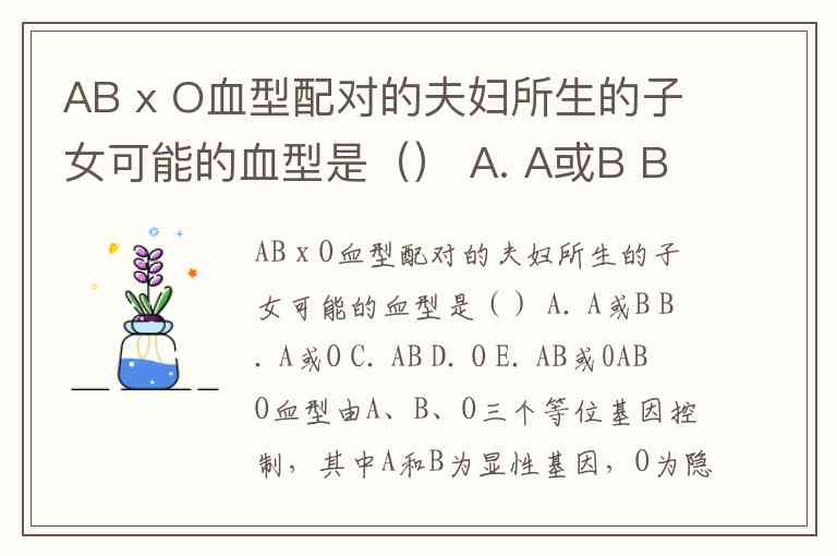 AB x O血型配对的夫妇所生的子女可能的血型是() A. A或B B. A或O C. AB D. O E. AB或0