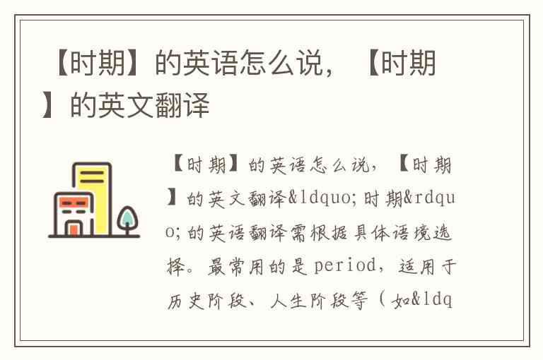 “时期”的英语翻译需根据具体语境选择。最常用的是 period,适用于历史阶段、人生阶段等(如“战国时期”译为 "the Warring States Period");era 强调时代特征(如“信息时代”是 "the Information Era");epoch 侧重重大变革的新纪元(如“冰河时期”是 "Ice Age",也可用 "glacial epoch");time 最通用但较笼统(如“困难时期”译为 "hard times")。选择时需结合所指时期的长度、特征及固定搭配,例如“童年时期”习惯说 "childhood" 而非字面翻译。