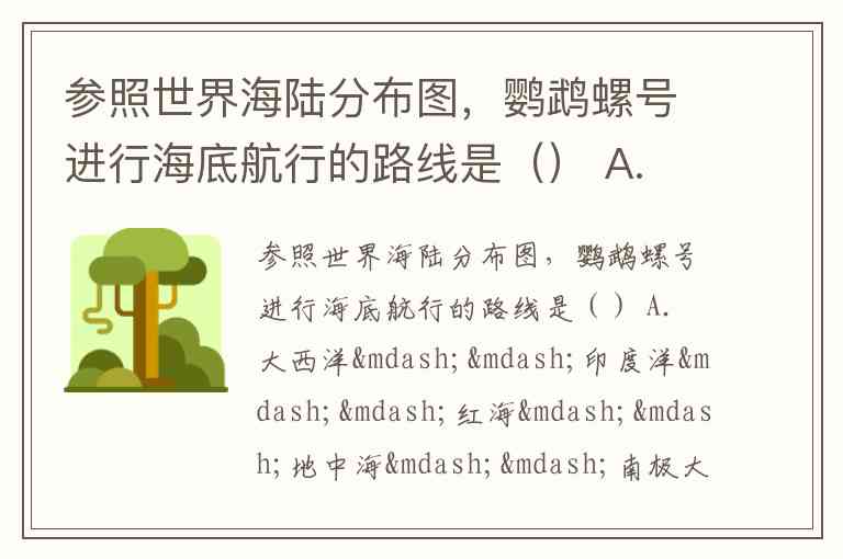 参照世界海陆分布图,鹦鹉螺号进行海底航行的路线是() A. 大西洋——印度洋——红海——地中海——南极大陆——太平洋 B. 印度洋——地中海——大西洋——红海——南极大陆——太平洋 C. 太平洋——红海——地中海——大西洋——南极大陆——印度洋 D. 太平洋——印度洋——红海——地中海——南极大陆——大西洋