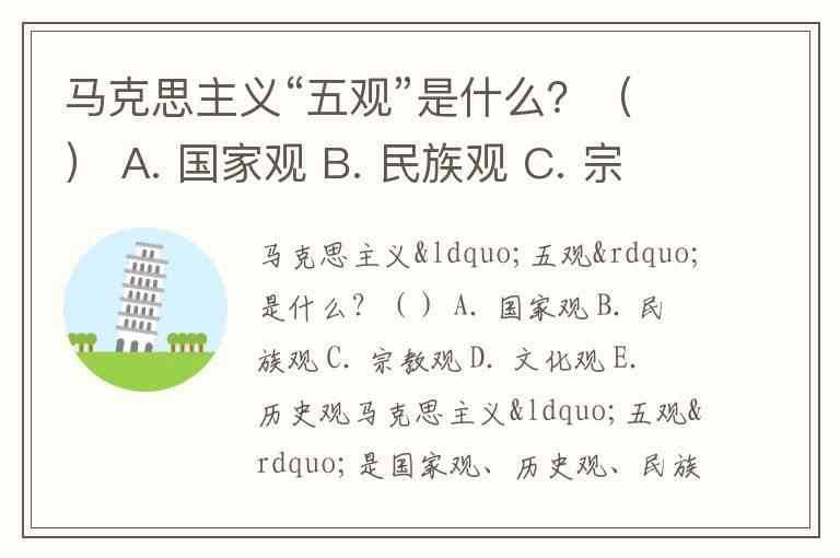马克思主义“五观”是什么?() A. 国家观 B. 民族观 C. 宗教观 D. 文化观 E. 历史观