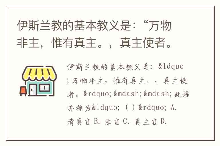伊斯兰教的基本教义是:“万物非主,惟有真主。,真主使者。”——此语亦称为“()” A. 清真言 B. 法言 C. 真主言 D. 圣言