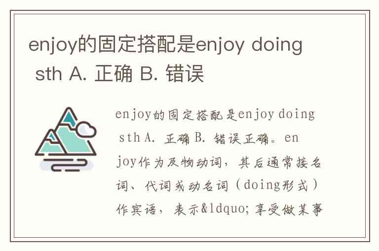 enjoy的固定搭配是enjoy doing sth A. 正确 B. 错误
