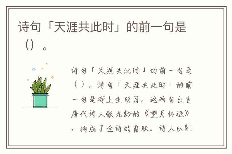 诗句「天涯共此时」的前一句是()。