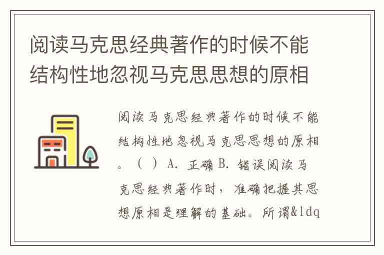 阅读马克思经典著作的时候不能结构性地忽视马克思思想的原相。( ) A. 正确 B. 错误