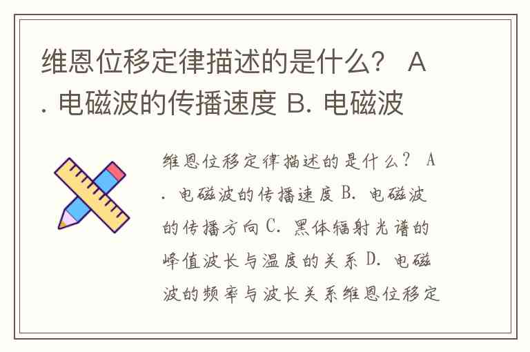 维恩位移定律描述的是什么? A. 电磁波的传播速度 B. 电磁波的传播方向 C. 黑体辐射光谱的峰值波长与温度的关系 D. 电磁波的频率与波长关系