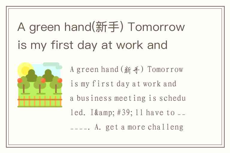 A green hand(新手) Tomorrow is my first day at work and a business meeting is scheduled. I'll have to ______. A. get a more challenging job B. prepare a good resume for C. take up several internships D. dress smartly and be on time