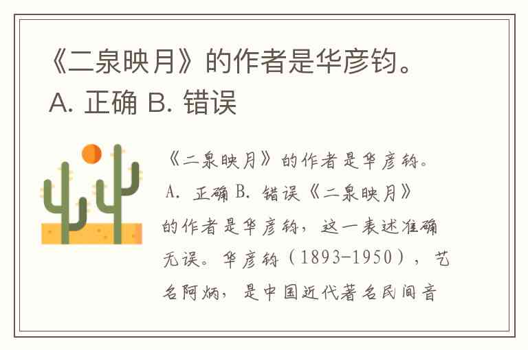 《二泉映月》的作者是华彦钧。 A. 正确 B. 错误