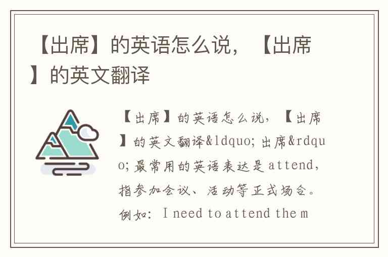 “出席”最常用的英语表达是 attend,指参加会议、活动等正式场合。例如: