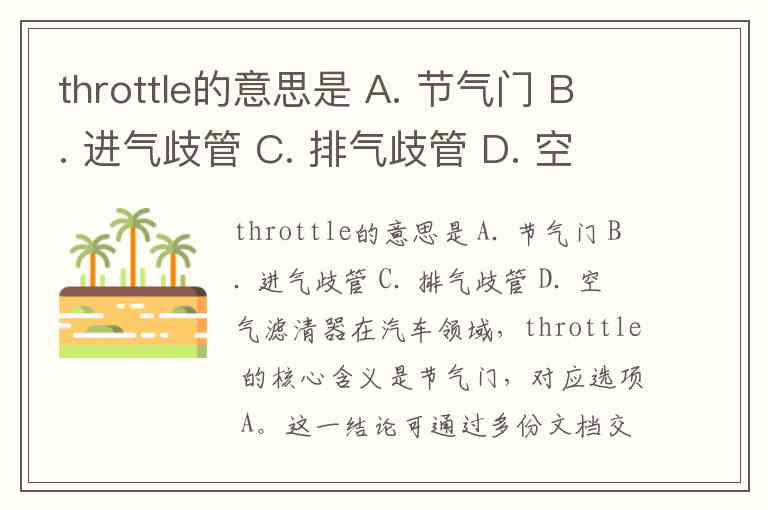 throttle的意思是 A. 节气门 B. 进气歧管 C. 排气歧管 D. 空气滤清器