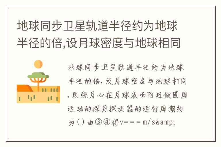 用户现在需要解决的物理题是关于地球同步卫星轨道半径和月球表面探测器运行周期的问题。首先,我得回忆一下相关的物理知识,主要是万有引力提供向心力的公式。题目中提到地球同步卫星轨道半径约为地球半径的倍数,不过用户的问题描述里好像没写具体倍数,可能是输入的时候漏了?不过常见的地球同步卫星轨道半径大约是地球半径的6.6倍,可能题目里默认这个数据?或者可能用户的问题里原来有的,显示的时候出了问题?不过后面还有“由③④得v= = = m/s≈×103 m/s”,这部分看起来像是之前的推导被截断了,可能是复制粘贴的时候不完整。