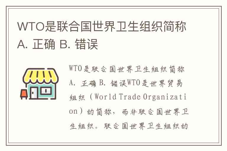 WTO是联合国世界卫生组织简称 A. 正确 B. 错误