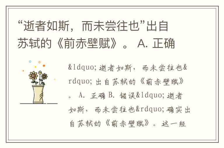 “逝者如斯,而未尝往也”出自苏轼的《前赤壁赋》。 A. 正确 B. 错误