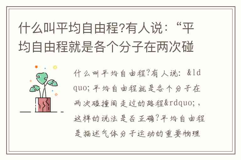 什么叫平均自由程?有人说:“平均自由程就是各个分子在两次碰撞间走过的路程”,这样的说法是否正确?