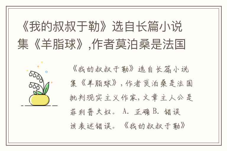该表述错误。《我的叔叔于勒》是法国批判现实主义作家莫泊桑的短篇小说,但其出处并非“长篇小说集《羊脂球》”,而是收录于短篇小说集《羊脂球》。《羊脂球》本身是莫泊桑的短篇小说集,收录了包括同名作品在内的多篇短篇故事,而非长篇小说。