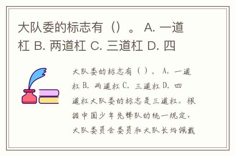 大队委的标志有()。 A. 一道杠 B. 两道杠 C. 三道杠 D. 四道杠