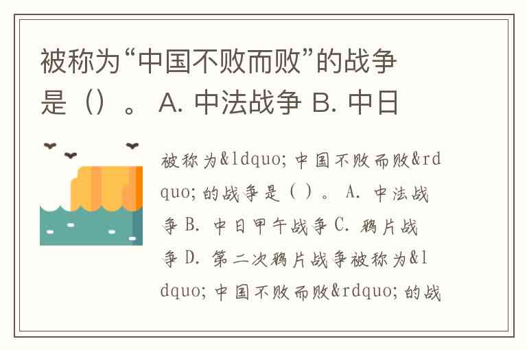 被称为“中国不败而败”的战争是()。 A. 中法战争 B. 中日甲午战争 C. 鸦片战争 D. 第二次鸦片战争