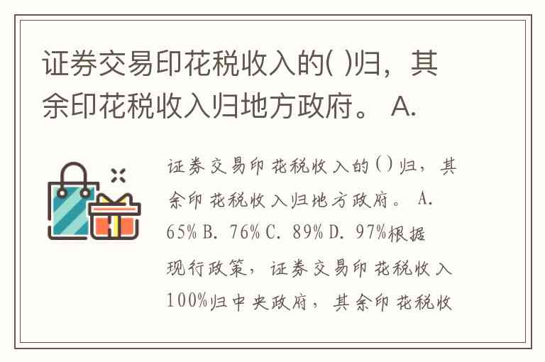 证券交易印花税收入的( )归,其余印花税收入归地方政府。 A. 65% B. 76% C. 89% D. 97%