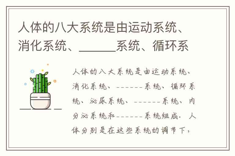 人体的八大系统是由运动系统、消化系统、______系统、循环系统、泌尿系统、______系统、内分泌系统和______系统组成.人体分别是在这些系统的调节下,使各种生命活动能够有序地进行,也使人能够适应环境,在复杂多变的生物圈中生存并得到发展.