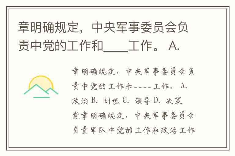 章明确规定,中央军事委员会负责中党的工作和____工作。 A. 政治 B. 训练 C. 领导 D. 决策
