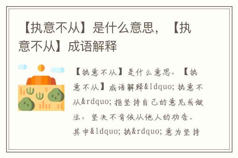 【执意不从】是什么意思,【执意不从】成语解释