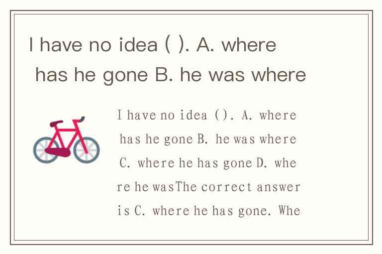 I have no idea ( ). A. where has he gone B. he was where C. where he has gone D. where he was