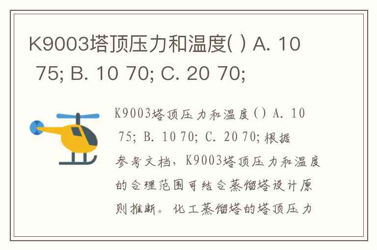 K9003塔顶压力和温度( ) A. 10 75; B. 10 70; C. 20 70;