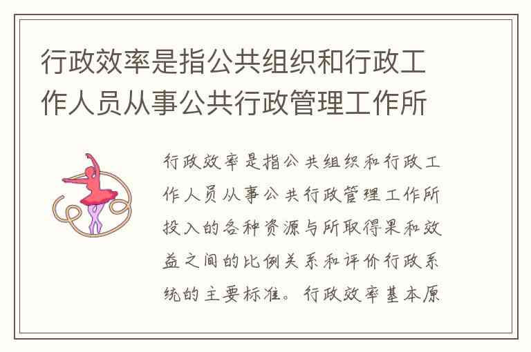 行政效率是指公共组织和行政工作人员从事公共行政管理工作所投入的各种资源与所取得果和效益之间的比例关系和评价行政系统的主要标准。行政效率基本原则包括: A. 合法行政原则 B. 合理行政原则 C. 程序正当原则 D. 诚实守信原则