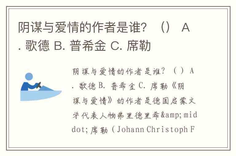 阴谋与爱情的作者是谁?() A. 歌德 B. 普希金 C. 席勒