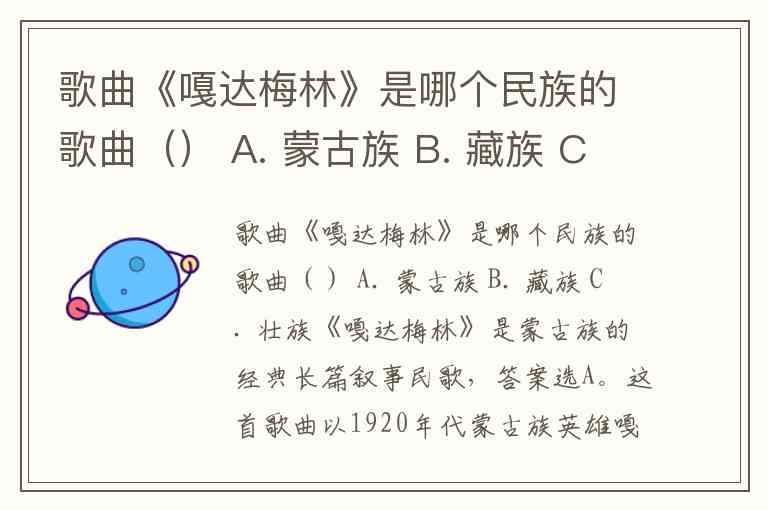 歌曲《嘎达梅林》是哪个民族的歌曲() A. 蒙古族 B. 藏族 C. 壮族