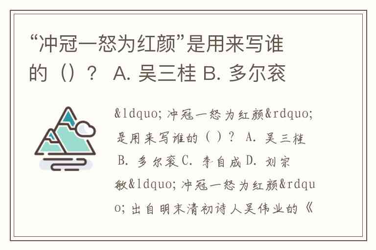 “冲冠一怒为红颜”是用来写谁的()? A. 吴三桂 B. 多尔衮 C. 李自成 D. 刘宗敏