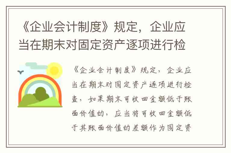 正确。根据《企业会计制度》第五十六条明确规定,企业需在期末对固定资产逐项检查,当可收回金额低于账面价值时,应计提固定资产减值准备。这一要求与题目描述完全一致,体现了会计谨慎性原则,通过对技术陈旧、长期闲置等导致价值减损的资产及时计提减值,确保财务报表反映资产真实价值。例如,若设备因技术迭代导致可收回金额低于账面净值20,000元,企业需借记“营业外支出”并贷记“固定资产减值准备”20,000元,使资产负债表中固定资产净额以可收回金额列示。这一处理方式有效防范了资产虚增风险,提升了会计信息质量。