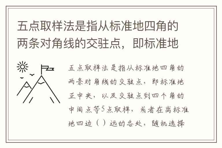 五点取样法的两种主要操作方式中,第二种明确规定在离标准地四边4~10步远的位置随机选择5个点取样。这一距离范围在农业和生态学调查中被广泛采用,既能避免田边边际效应的干扰,又能保证样本的代表性。