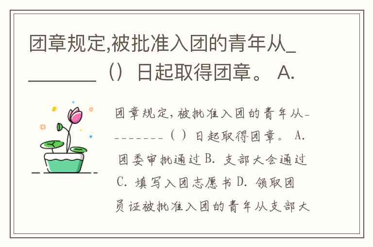 团章规定,被批准入团的青年从________()日起取得团章。 A. 团委审批通过 B. 支部大会通过 C. 填写入团志愿书 D. 领取团员证