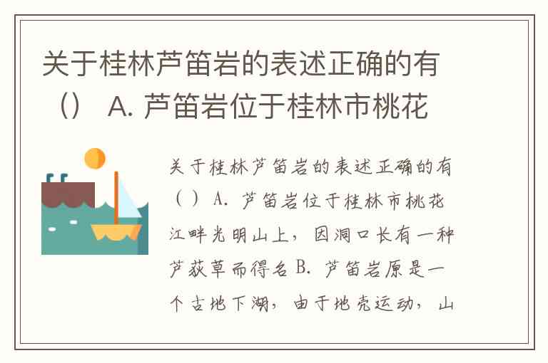 关于桂林芦笛岩的表述正确的有() A. 芦笛岩位于桂林市桃花江畔光明山上,因洞口长有一种芦荻草而得名 B. 芦笛岩原是一个古地下湖,由于地壳运动,山体抬升,地下水位下降,地下湖形成了现在的山洞 C. 洞深240米,游程500米,最宽处93米,最大高度18米 D. 著名诗人称其为“简直和神话传说中的阆苑仙宫一样”