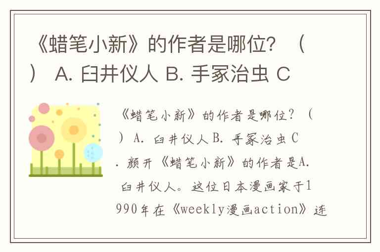 《蜡笔小新》的作者是哪位?() A. 臼井仪人 B. 手冢治虫 C. 颜开
