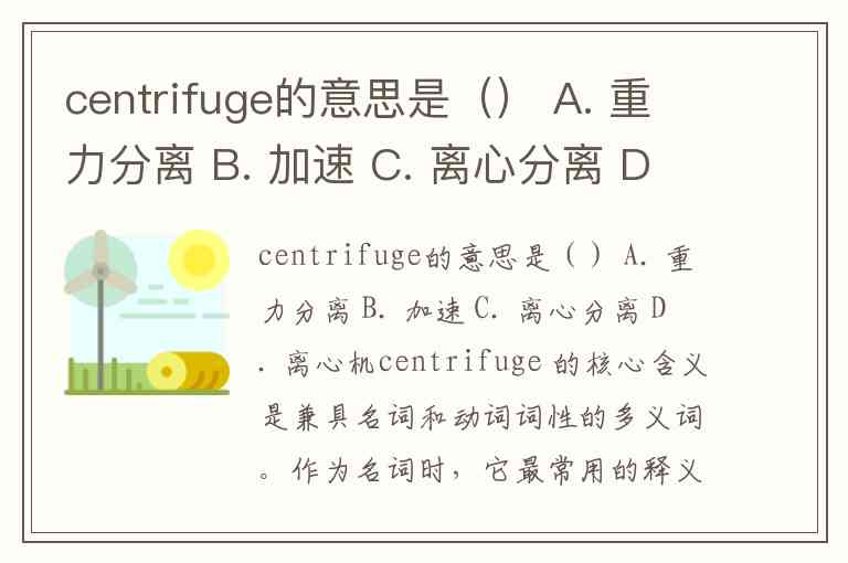 centrifuge的意思是() A. 重力分离 B. 加速 C. 离心分离 D. 离心机