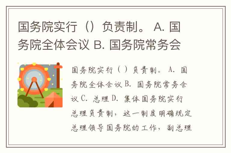 国务院实行()负责制。 A. 国务院全体会议 B. 国务院常务会议 C. 总理 D. 集体
