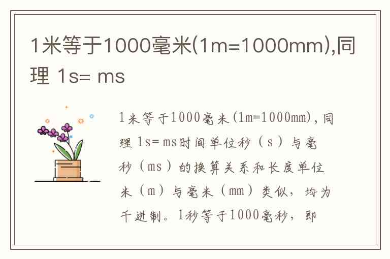 1米等于1000毫米(1m=1000mm),同理 1s= ms
