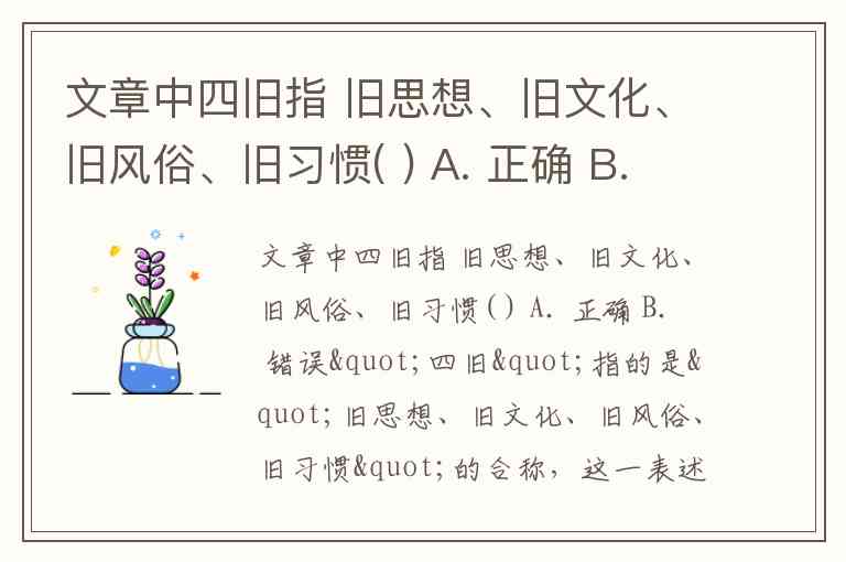 文章中四旧指 旧思想、旧文化、旧风俗、旧习惯( ) A. 正确 B. 错误