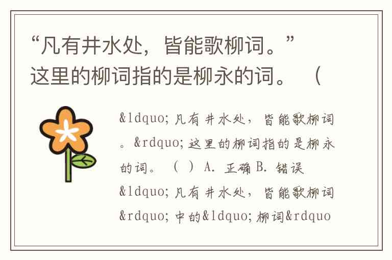 “凡有井水处,皆能歌柳词。”这里的柳词指的是柳永的词。 ( ) A. 正确 B. 错误