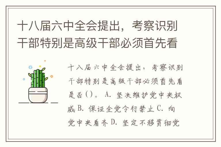 十八届六中全会提出,考察识别干部特别是高级干部必须首先看是否( )。 A. 坚决维护党中央权威 B. 保证全党令行禁止 C. 向党中央看齐 D. 坚定不移贯彻党的基本路线